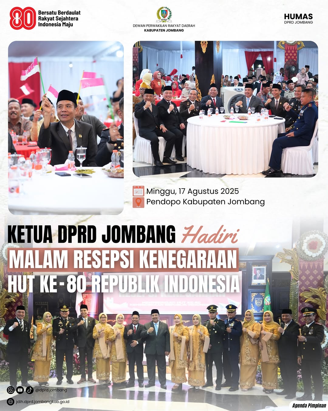 Ketua DPRD Kabupaten Jombang hadiri Malam Resepsi Kenegaraan Hari Ulang Tahun ke-80 Kemerdekaan Republik Indonesia.