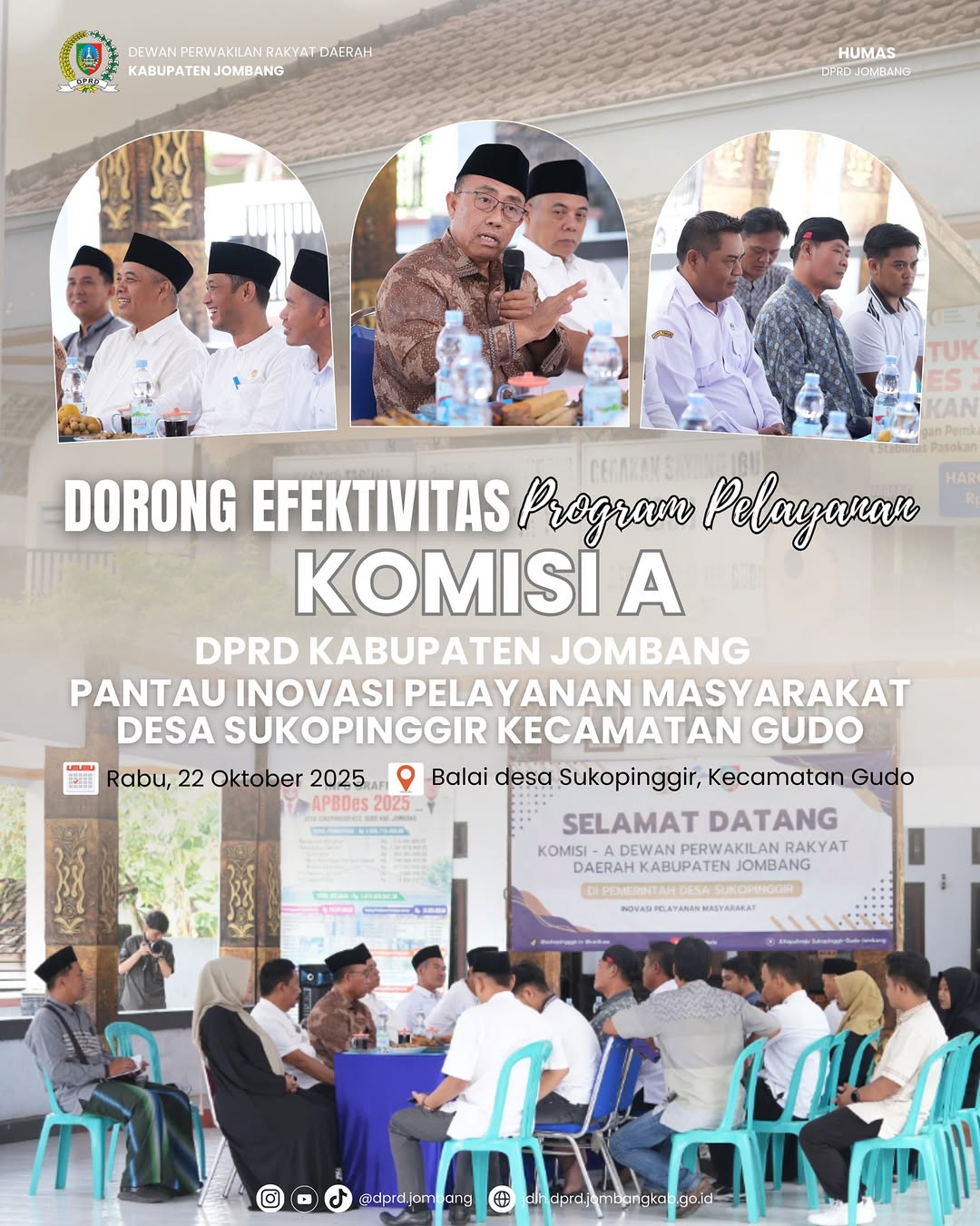 Komisi A DPRD Kabupaten Jombang juga menegaskan komitmennya untuk terus mendorong dan mengawal setiap bentuk inovasi pelayanan publik di desa-desa agar dapat menjadi contoh bagi wilayah lain di Kabupaten Jombang.