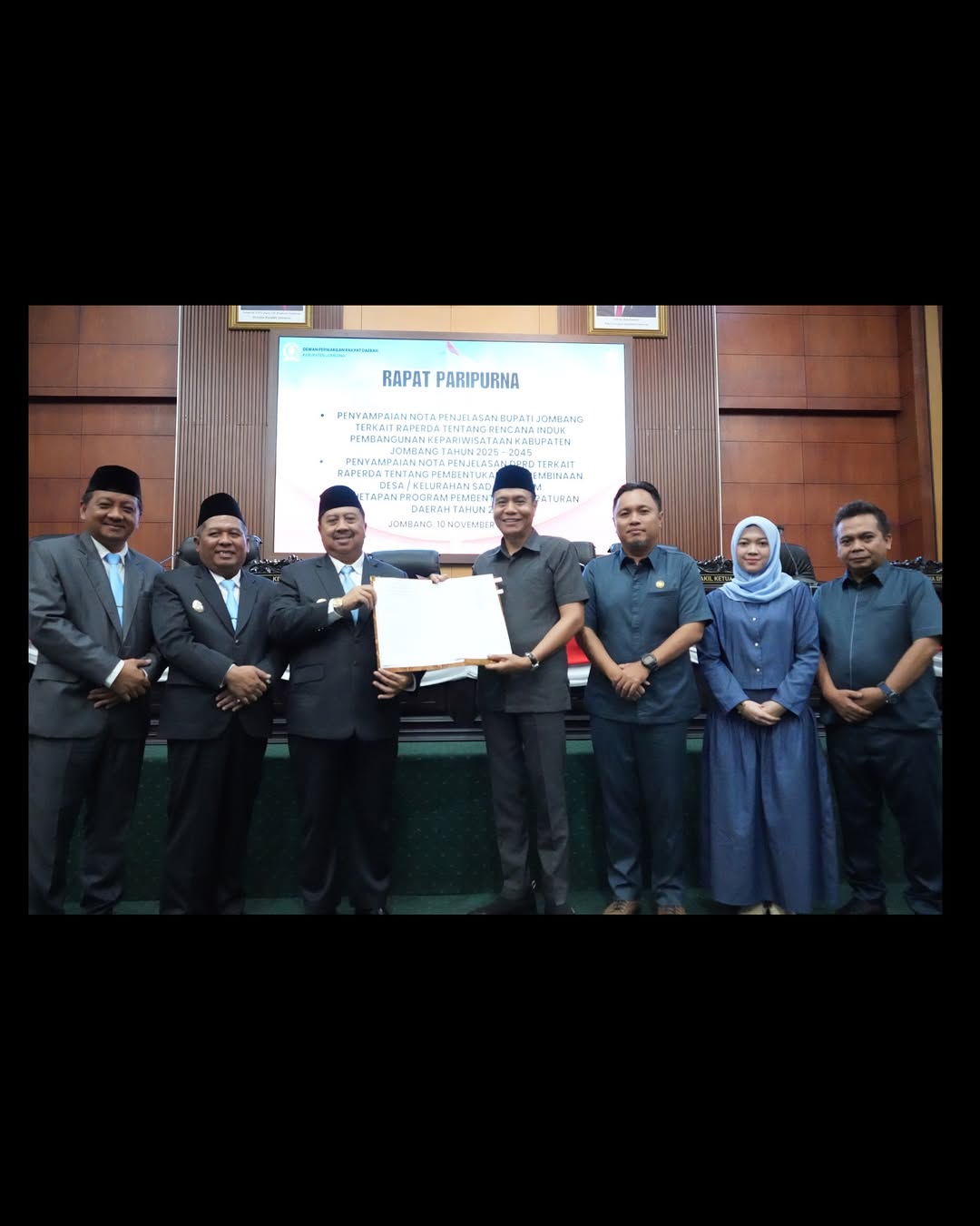 Dalam rapat tersebut, Bupati Jombang menyampaikan Nota Penjelasan terkait Raperda tentang Rencana Induk Pembangunan Kepariwisataan Kabupaten Jombang Tahun 2025–2045. Raperda ini diharapkan menjadi landasan strategis dalam pengembangan potensi wisata di Kabupaten Jombang secara berkelanjutan, terarah, dan mampu memberikan dampak ekonomi positif bagi masyarakat.