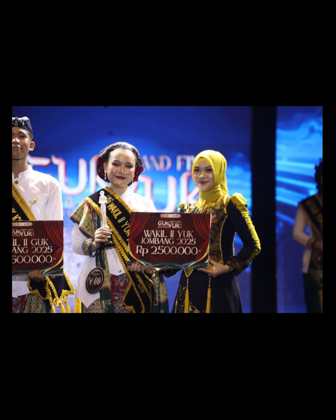 Dalam kesempatan tersebut, Wakil Ketua II DPRD Kabupaten Jombang menyampaikan bahwa Guk Yuk Jombang bukan hanya sekadar ajang kompetisi, melainkan momentum untuk membentuk duta yang mampu memperkenalkan jati diri daerah melalui karakter, kepribadian, dan wawasan yang luas.